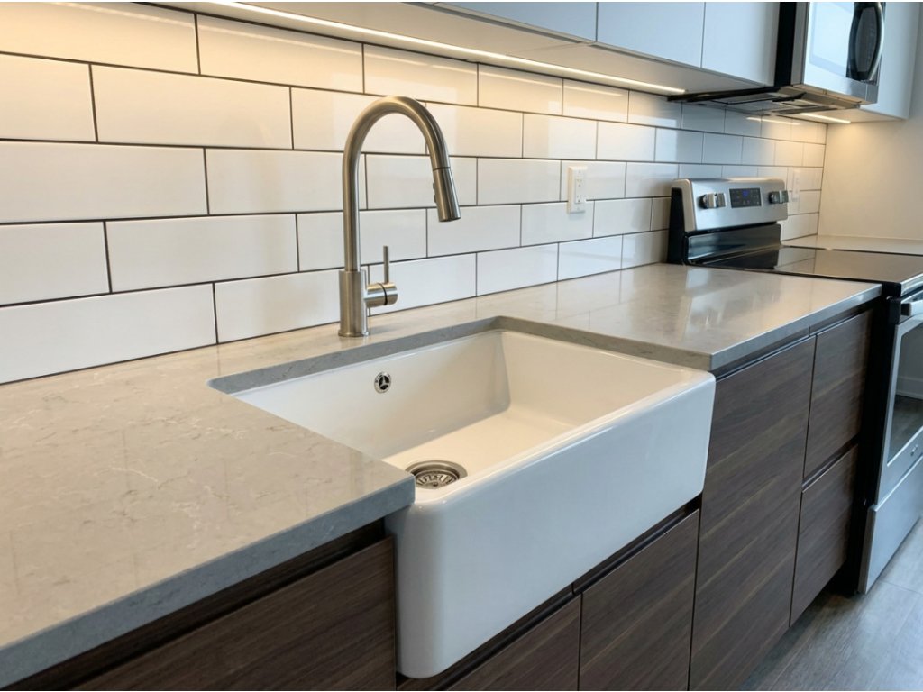 Vanička dřezu Farmhouse 595 (17 cm) je dostatečně hluboká pro pohodlné mytí nádobí. Samostatný modulový dřez je určený do skřínky min. 60 cm. Montáž dřezu se doporučuje převážně do desek z nenasákavého materiálu. V případě kameninové pracovní desky, se dřez instaluje pod desku, v případě dřevěné pracovní desky doporučujeme, aby dřez přesahoval jemně nad desku aby se zabránilo kontaktu s vodou.