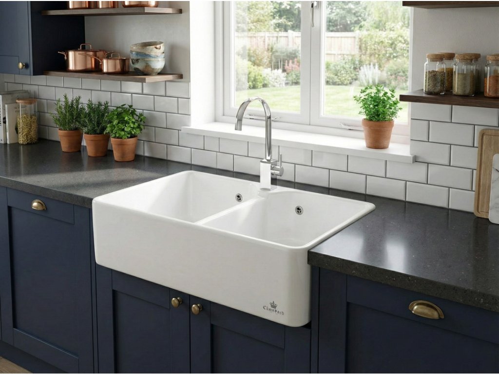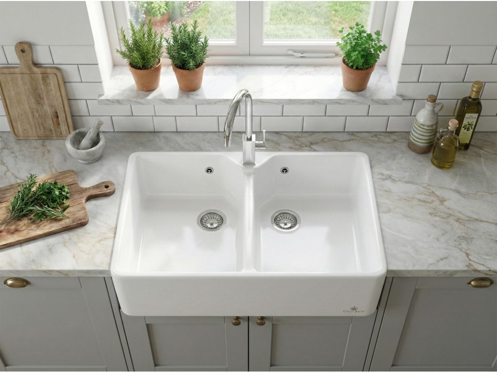 Keramický dvojdřez značky Chambord Farmhouse 800.2 – je dvoukomorové keramické umyvadlo a dřez v jednom. Dvě stejně velké komory jsou ideální pro přípravu jídel. Dřez doporučujeme do větších kuchyní. Vanička dřezu je dostatečně hluboká (cca 20 cm) pro pohodlné mytí nádobí.