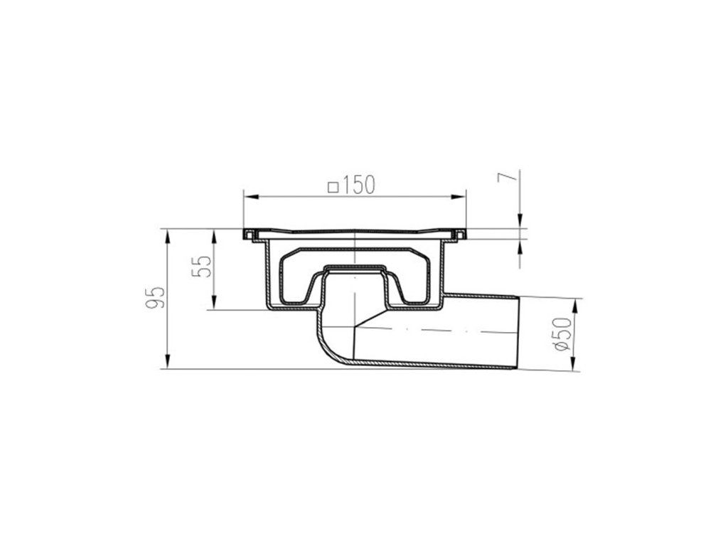 CHUDĚJ podlahová vpust Neptun 50 mm, boční odtok, nerez, 326 X N