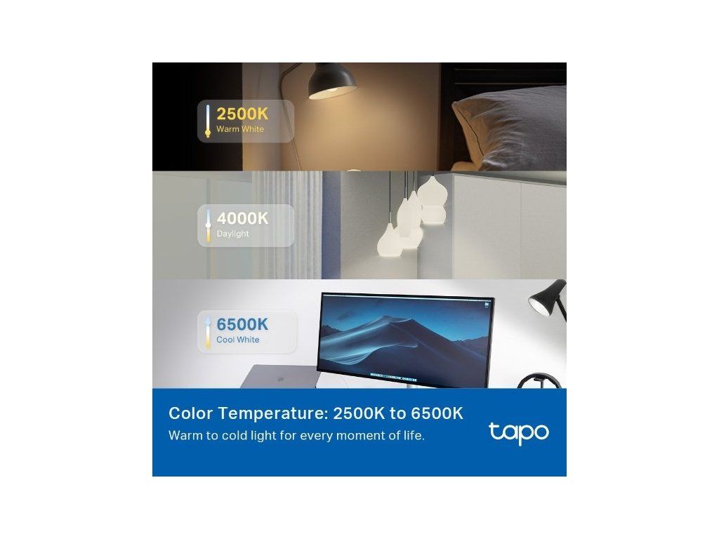 Chytrá žárovka TP-Link Tapo L430P E14 vám umožní vytvořit přesně takovou atmosféru, jakou si právě přejete – ať už barevnou, teplou, nebo studenou. S možností nastavit 16 milionů barev, stmívatelností od 1 % do 100 % a barevnou teplotou 2 500–6 500 K se žárovka přizpůsobí každé situaci – od relaxace po práci.