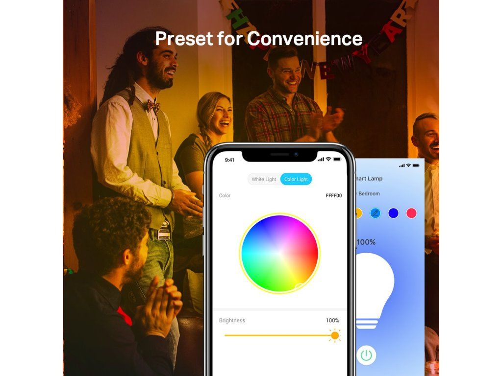 Jednoduše připojte chytrou žárovku k domácí Wi-Fi síti a ovládejte pomocí aplikace Tapo kdekoliv se pohybujete. Nepotřebujete žádné další ovládací prvky. Žárovka podporuje také hlasové ovládání Amazon Alexa a Google Assistant. Lze ji stmívat, měnit barvy a rozsvěcovat ručně nebo na základě nastavitelných časových rozvrhů.