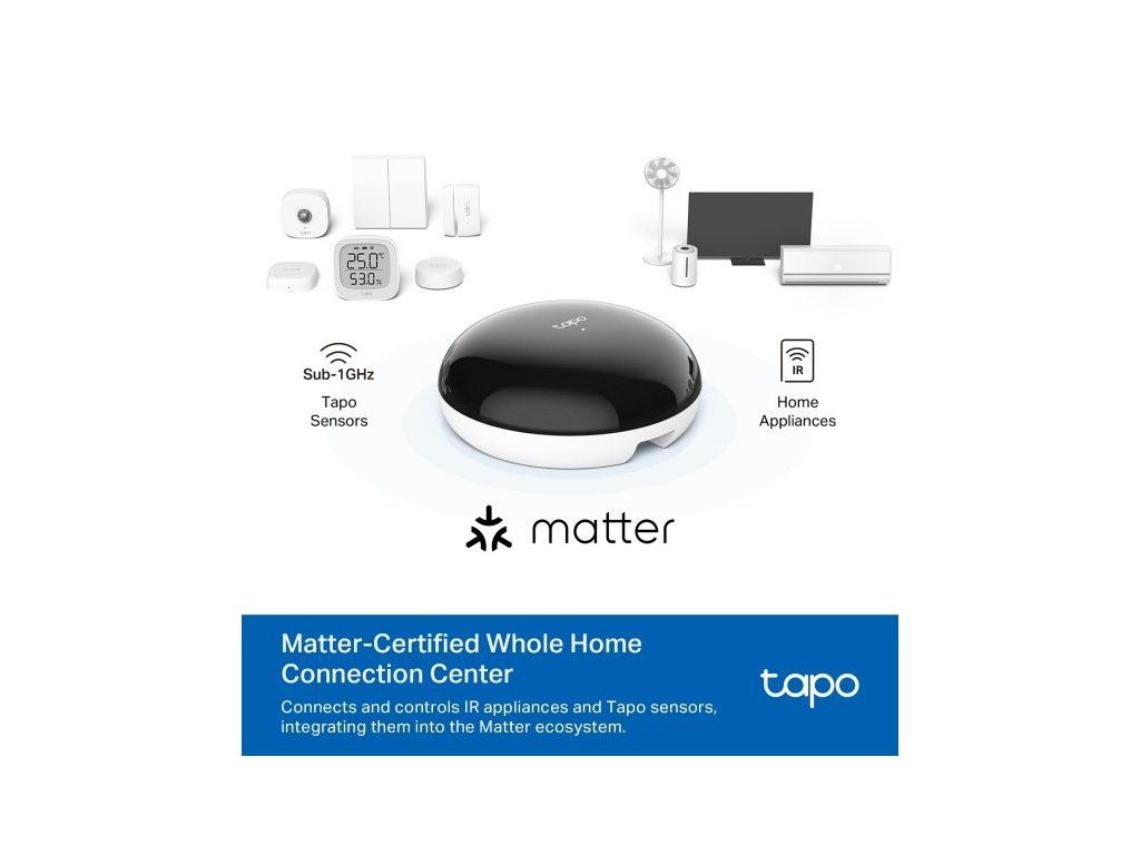 Svá zařízení k hubu spárujete velmi snadno. Díky certifikovanému systému Matter připojujete a ovládáte IR elektroniku a senzory. Pro pohodlné párování a správu využijete praktickou aplikaci Tapo. Umožní vám ovládání svých zařízení kdykoliv a odkudkoliv.