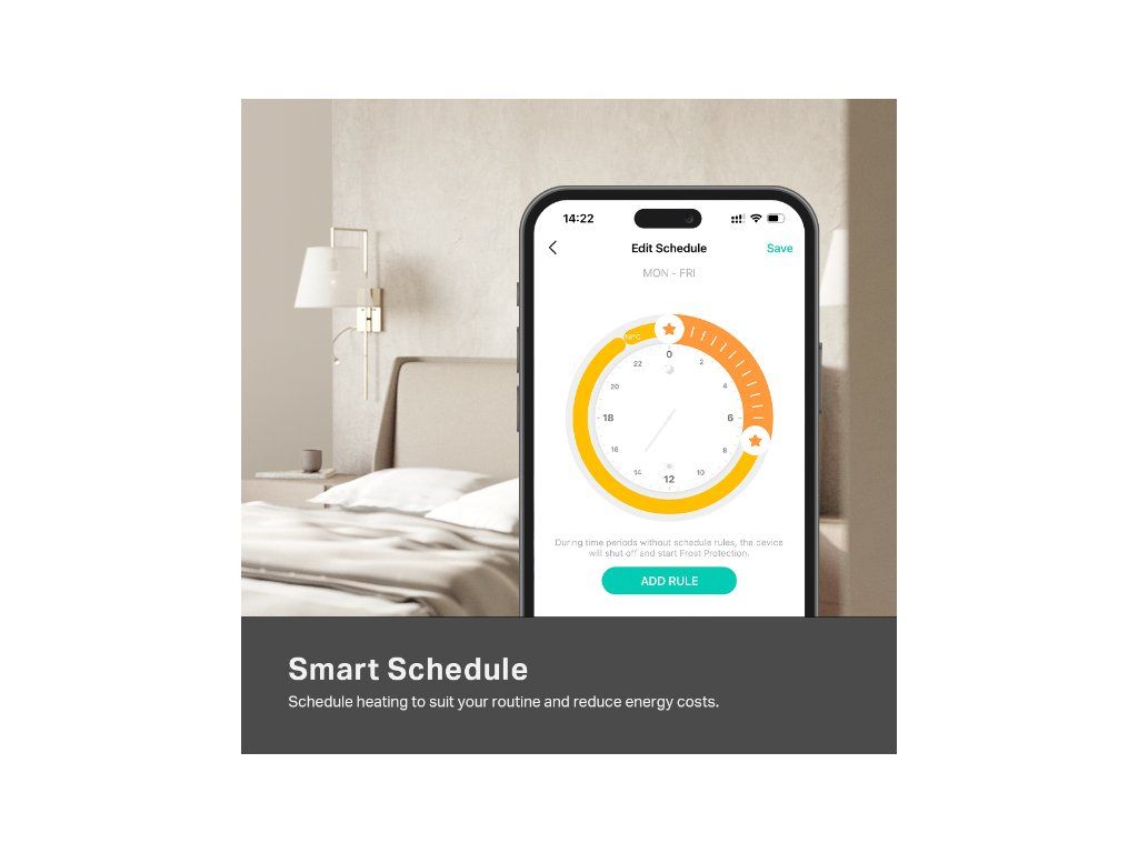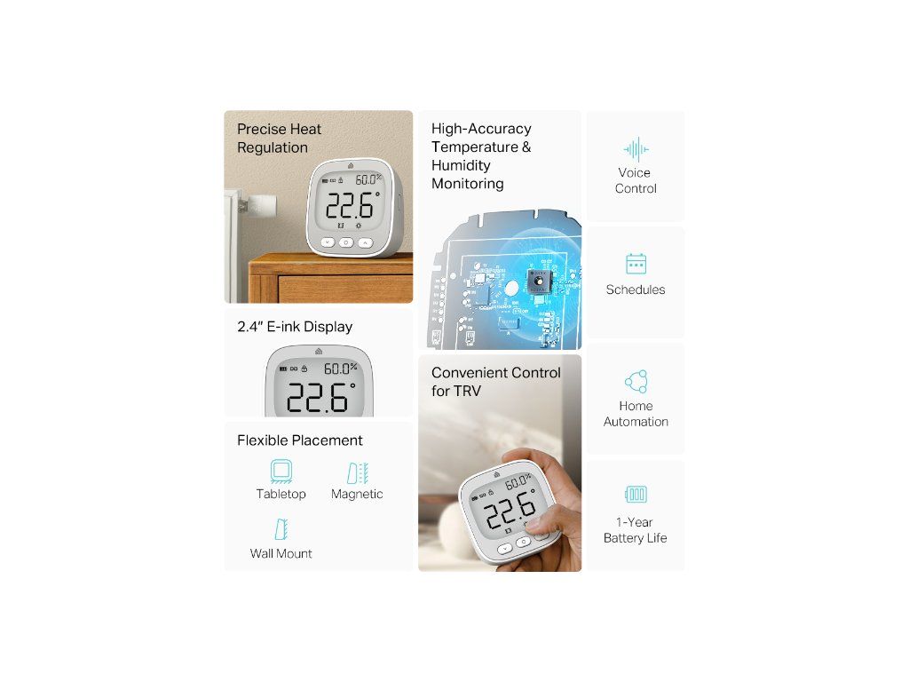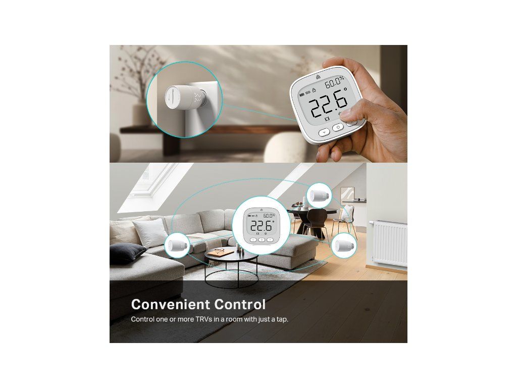 Chytrý termostat TP-Link KE110 Smart zajišťuje přesnou regulaci teploty podle vašich potřeb. Stačí ho propojit s kompatibilními termostatickými hlavicemi Kasa. Pokud máte chytrých hlavic více, přizpůsobí teplotu v jednotlivých místnostech podle nastavené hodnoty. Ovládáte je odkudkoliv a kdykoliv buď samostatně, nebo všechny najednou pomocí praktické aplikace. Kromě toho termostat podporuje hlasové ovládání díky podpoře Google Assistanta a Alexy.