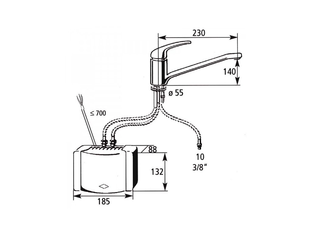 Sestava malého průtokového ohřívače a beztlakové pákové armatury s otočným raménkem, určená pro kuchyňský dřez. Instalace přímo u odběrného místa zaručuje nízkou spotřebu elektrické energie a vody. Díky krátké vzdálenosti je teplá voda k dispozici během několika vteřin. V závislosti na výkonu ohřívače je teplota vody* v rozmezí 40°- 55°C (*tepelný výkon je také ovlivněn teplotou vstupní vody). Chromovaná armatura s otočným raménkem o délce 23 cm. Snadná montáž na pracovní desku nebo dřez s připojením k ohřívači flexi hadicemi. Komplet je vhodný zejména pro kuchyně s myčkou. Alternativně je možné objednat v kombinaci s baterií s vytažitelnou sprchou pod označením EKA.