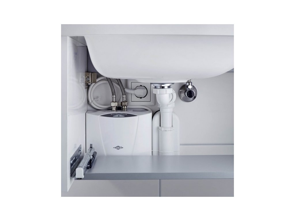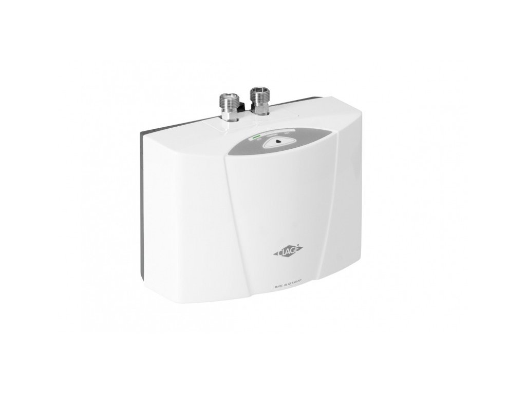 - Malý elektronicky řízený průtokový ohřívač, mění výkon automaticky podle okamžitého průtoku vody a zvolené teploty.