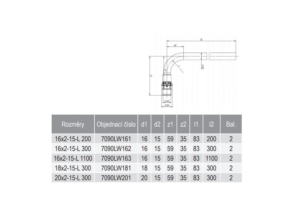 COMAP MULTISKIN 7090LW L-garnitura (16x2)x15mm, L300mm, koncová, lisovací, voda, mosaz, 7090LW162