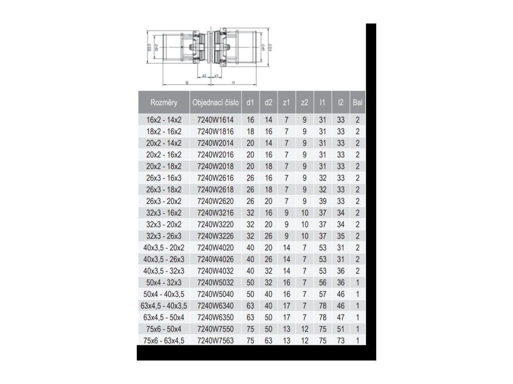 COMAP MULTISKIN 7240W spojka (20x2)x(16x2)mm, redukovaná, lisovací, voda, mosaz, 7240W2016