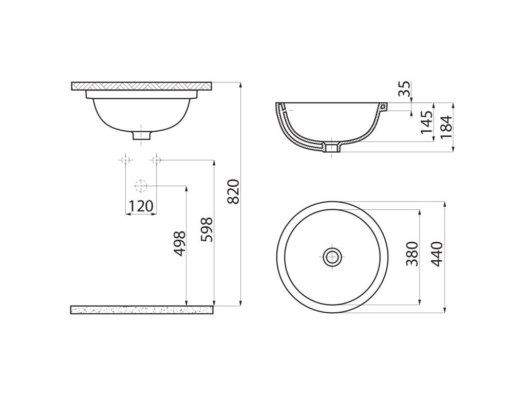 Instalace zapuštením pod desku, k desce se lepí pomocí silikonu.