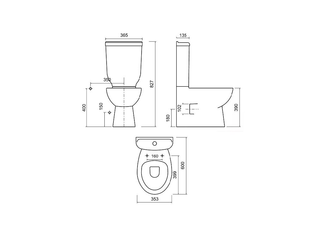 - WV kombi mísa s bidetovou tryskou, kombi nádrž, splachovadlo s mechanickým tlačítkem