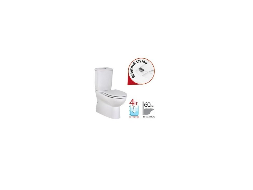 Kombi WC mísa se zabudovanou bidetovou tryskou – UNI odpad