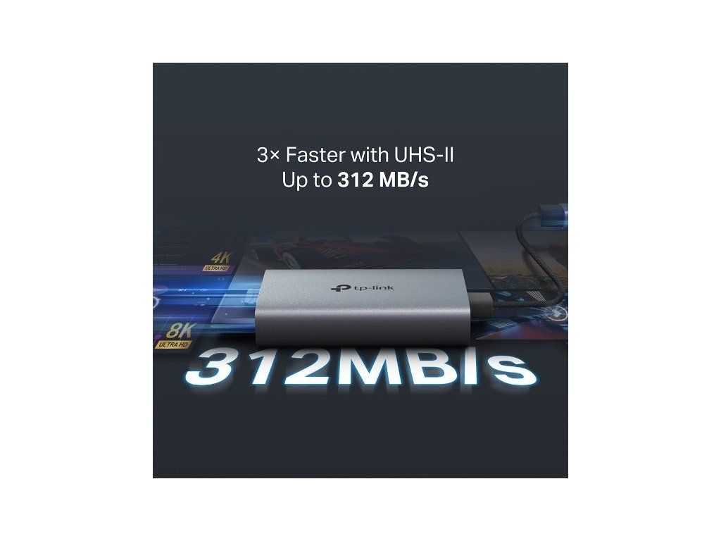 Čtečka karet TP-Link UA440C poskytuje vysokou rychlost přenosu dat a širokou kompatibilitu. Podporuje SD4.0 UHS-II karty a poskytne vám vysokou rychlost čtení až 312 MB/s. Snadno přenesete 8K i 4K videa nebo velké soubory z karet. USB 3.0 typu C zajistí stabilní a rychlé připojení s nahráváním rychlostí až 5 Gb/s.