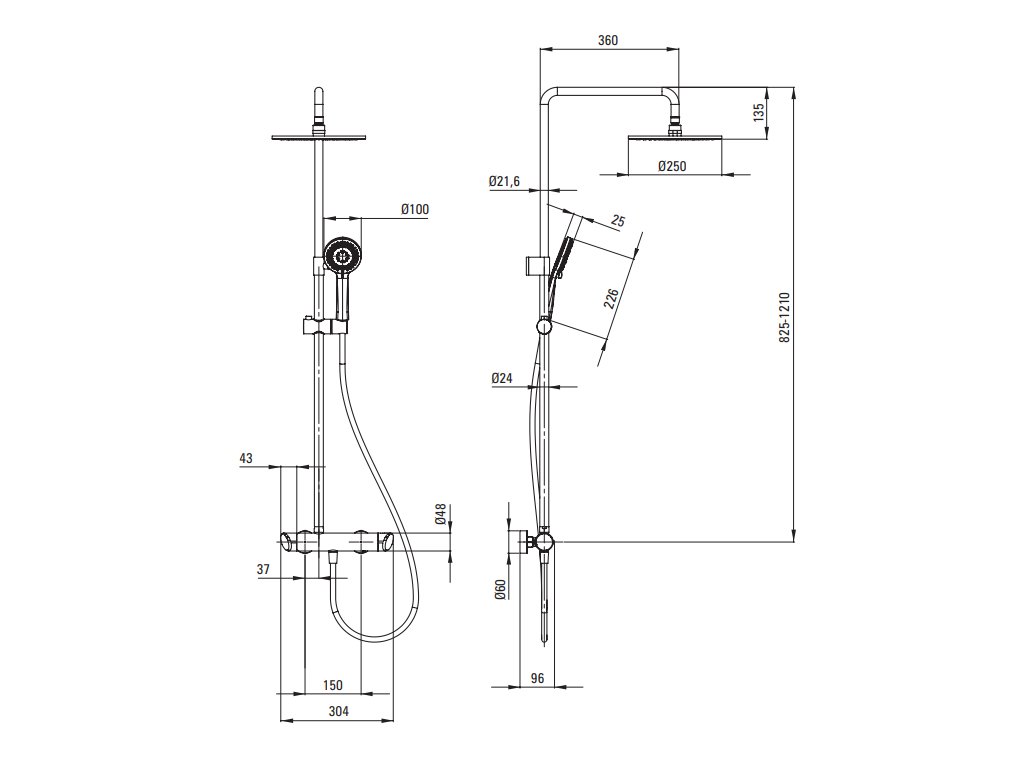 Dešťová sprcha má nastavitelnou výšku horní sprchové hlavice tak, aby vyhovovala výšce uživatele. Tento rozsah umožňuje optimální nastavení výšky dešťové sprchy pro všechny členy domácnosti.