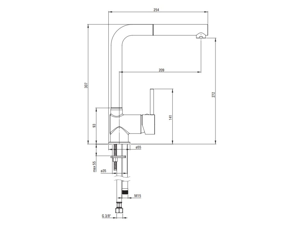 - provedení - kuchyňská dřezová stojánková vodovodní baterie s výsuvnou sprškou