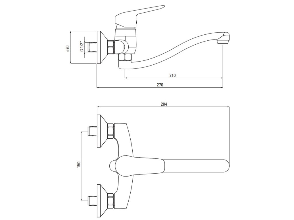 - moderní nástěnné provedení baterie s otočným ramínkem