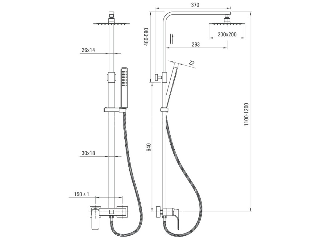- nastavitelná výška sprchové tyče - 110 až 120 cm