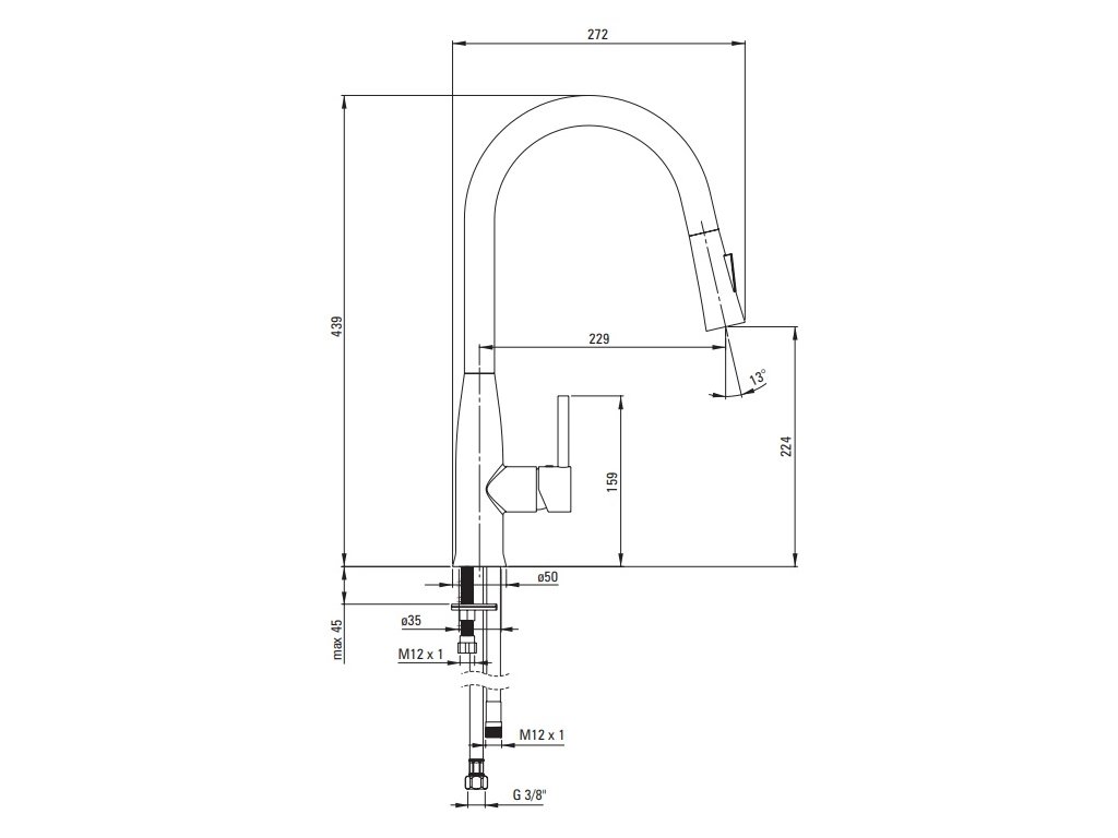 - provedení - kuchyňská dřezová stojánková vodovodní baterie U s výsuvnou sprškou a otočným ramínkem