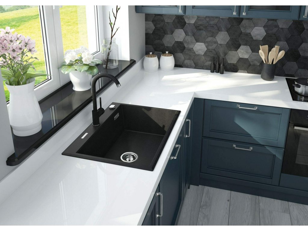 Dřezová baterie granitová Nem-U black