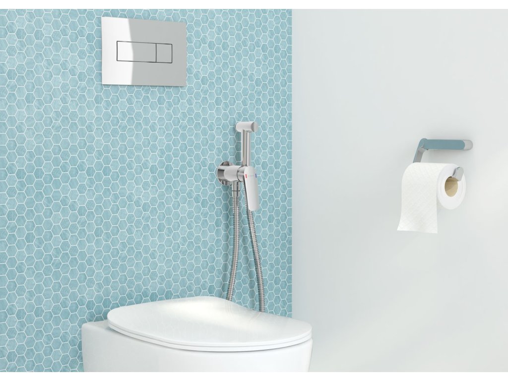 Deante Peonia 6v1 White WC závěsný komplet, chrom tlačítko, CDES6ZPW