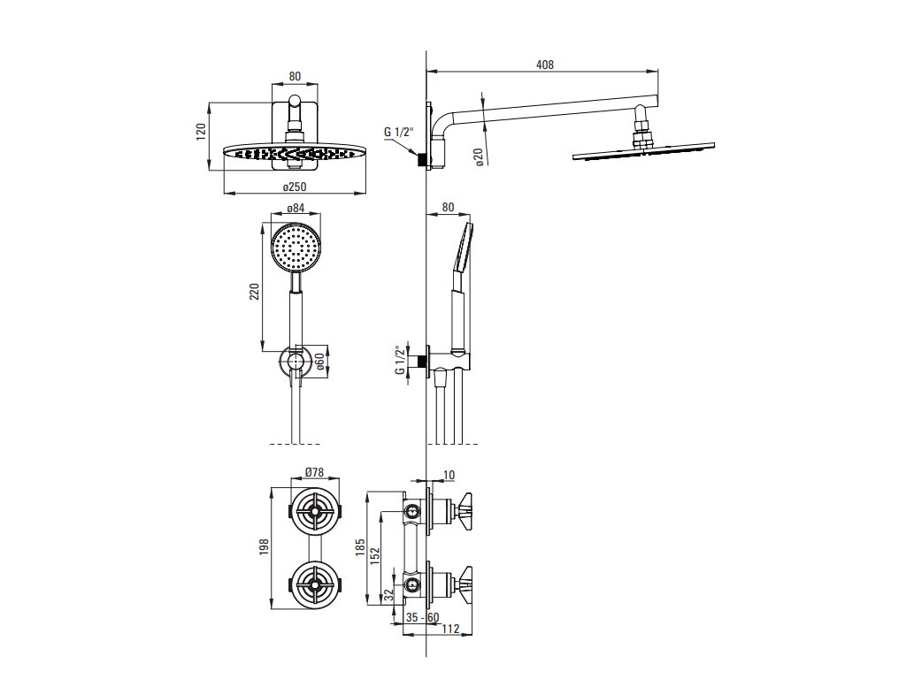 Skrytá sada se skládá z mosazné horní sprchy, sprchové hlavice, nástěnné výpusti, sprchové hadice a jednopákové baterie s přepínáním proudu. Baterie je vybavena progresivní horní sprchou, principy jejího ovládání jsou uvedeny ve videu níže. Ruční sprcha i sprchová hlavice jsou vybaveny systémem proti vodnímu kameni, díky kterému se snadno udržují v čistotě. Mosazná povrchová úprava dodá vaší koupelně originální vzhled. Při koupi sady si můžete být jisti, že vše do sebe dokonale zapadá.