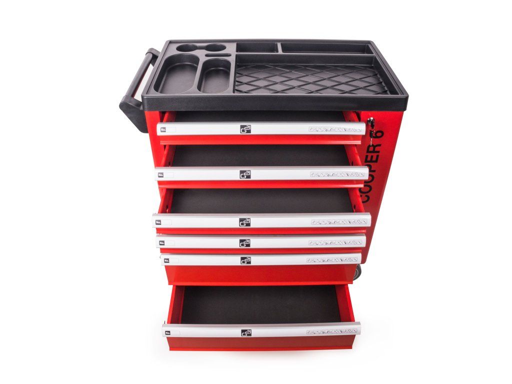 Dílenský vozík G21 Cooper 6 jsme zkonstruovali tak, aby pojal co největší množství dílenského nářadí a příslušenství. V šesti vnitřních zásuvkách a boční skříňce najdete místo pro uložení šroubováků i kleští, vrtaček nebo aku nářadí i příslušenství a dalšího nezbytného dílenského vybavení.