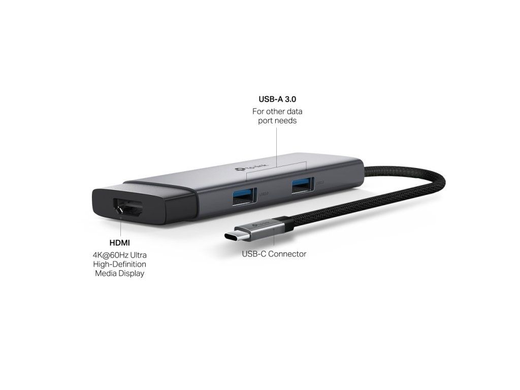 TP-Link UH5020C je elegantní a výkonný 5v1 USB-C hub, který z jediného portu vytvoří HDMI výstup, napájecí vstup (PD 100W), 1× USB-C a 2× USB-A pro rychlý přenos dat. Hliníkové tělo a opletený kabel zajišťují vysokou odolnost, zatímco Plug & Play podpora znamená okamžité použití bez instalace ovladačů.
