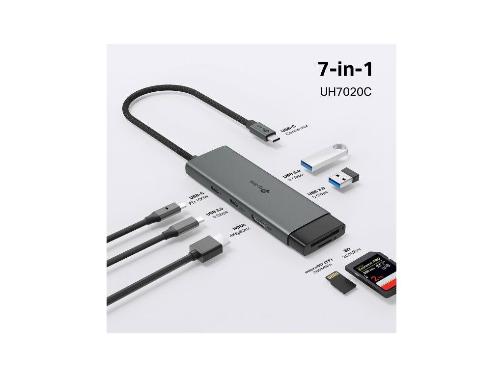 Rozšiřte možnosti svého zařízení s dokovací stanicí TP-Link UH7020C. Na jednom kompaktním zařízení se nachází celkem 7 portů. Najdete na něm port HDMI s podporou rozlišení 4K při 60 Hz, slot na SD/microSD kartu, podporu 100W napájení a superrychlé USB porty (až 5 Gb/s). Díky snadné Plug & Play instalaci je stanice ideální pro každodenní práci i zábavu.