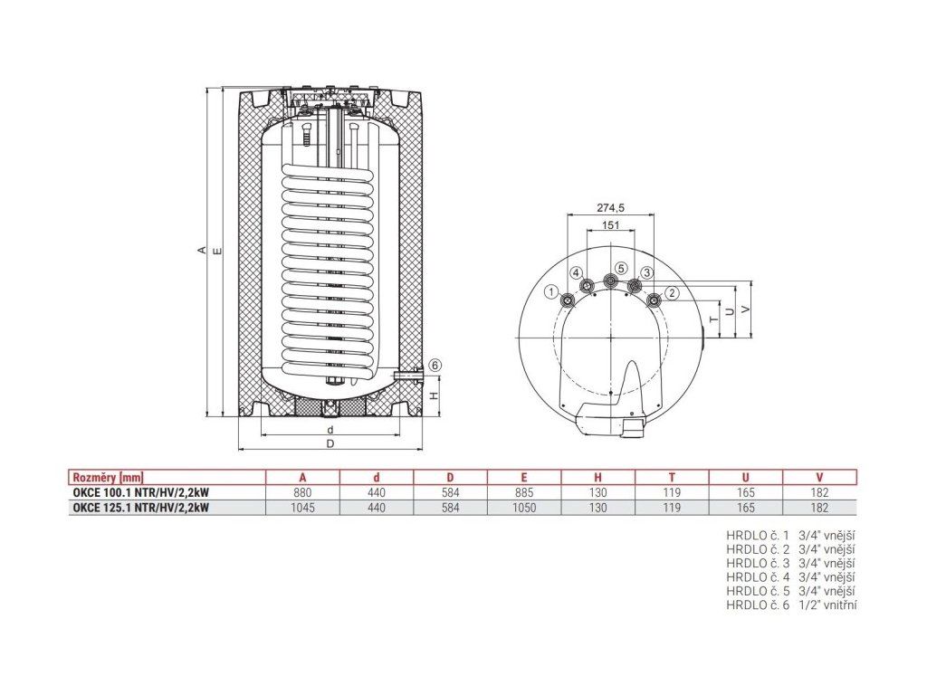 Zásobníky vody řady OKCE 100, 125 NTR/2,2 kW a OKCE 100.1, 125.1 NTR/HV/2,2 kW umožňují svou konstrukcí a množstvím variant ekonomickou přípravu teplé užitkové vody (TUV) pomocí různých zdrojů energie. Svým jmenovitým výkonem zaručují dostatečné množství TUV pro bytové jednotky, provozovny, restaurace a podobná zařízení. Pro ohřev TUV lze zvolit elektrickou energii, různé typy kotlů ústředního vytápění a jejich kombinace.
