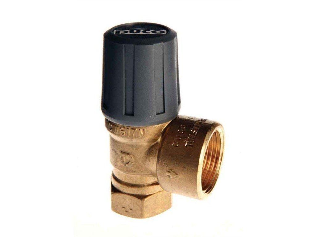 Topenářský pojistný ventil DUCO ve velikosti 3/4" x 1" s otevíracím tlakem 6 bar.
