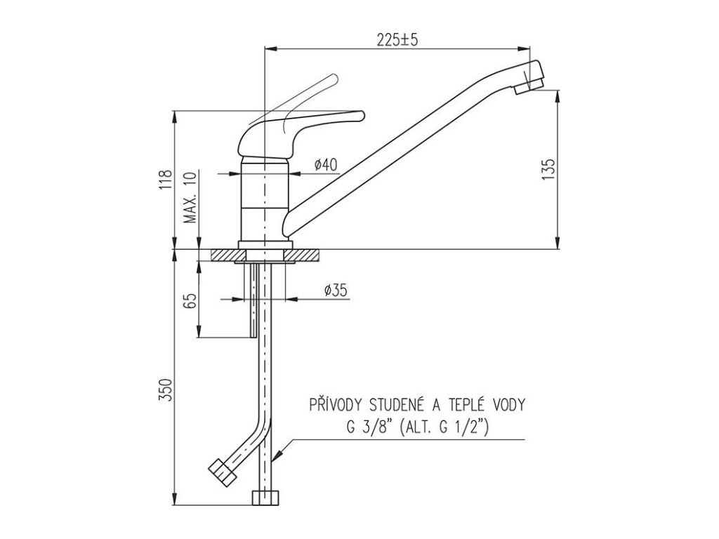 - Vývod: 225 mm
