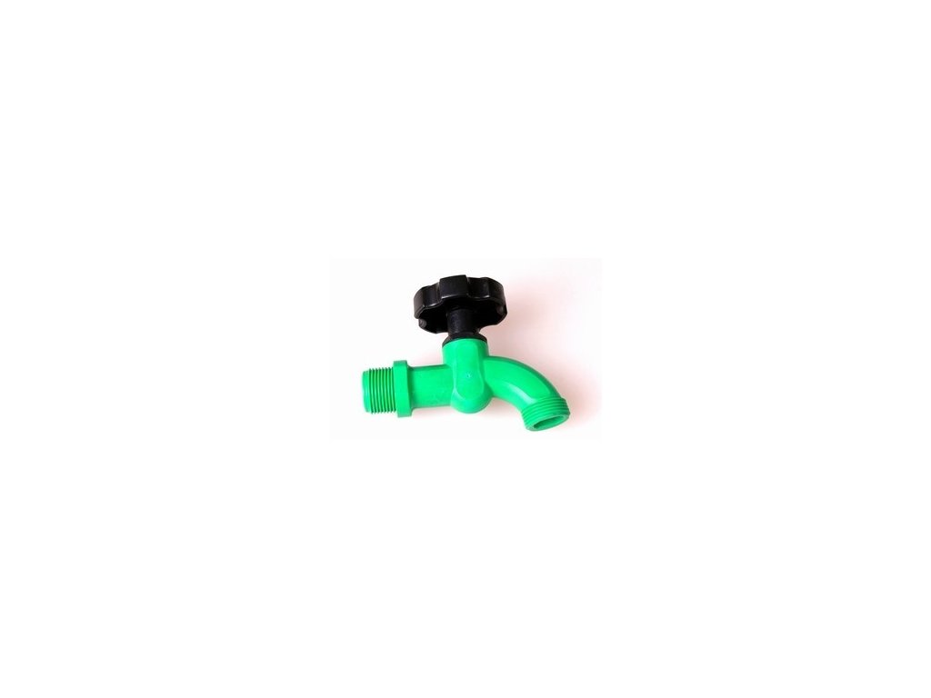Plastový vodovodní kohout, 3/4" závit na výtoku.3/4" vnější závit do zdi. 3/4" závit na výtoku.