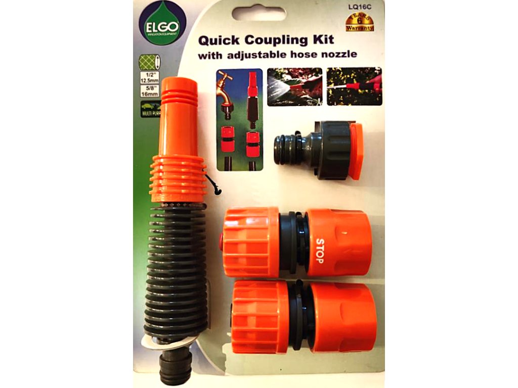 ELGO Postřikovací komplet, zahradní tryska+rychlospojky pro hadice 1/2" a 5/8", LQ16C