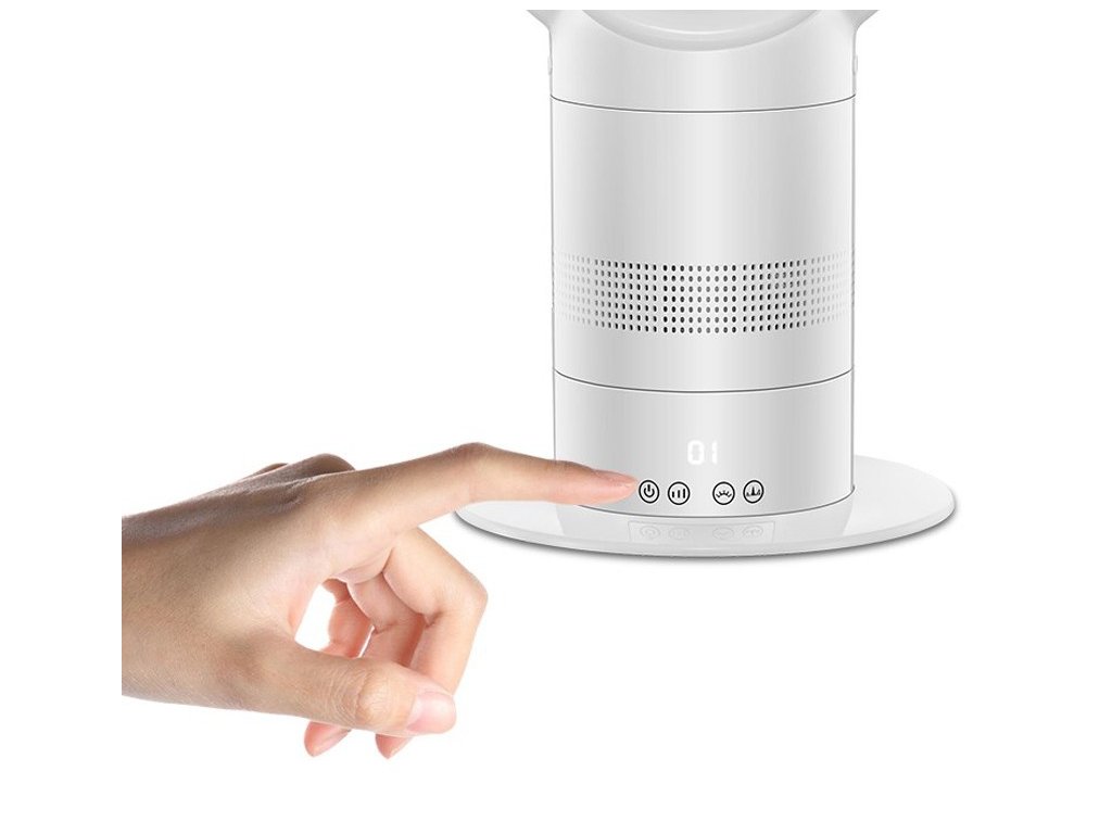 Ventilátor je vybaven dotykovým ovládáním a neviditelným displejem, který po zapnutí zobrazuje nastavenou úroveň intenzity proudění vzduchu nebo teplotu v místnosti při ohřevu. Ovládání ventilátoru můžete pohodlně provádět i pomocí dálkového ovládání.