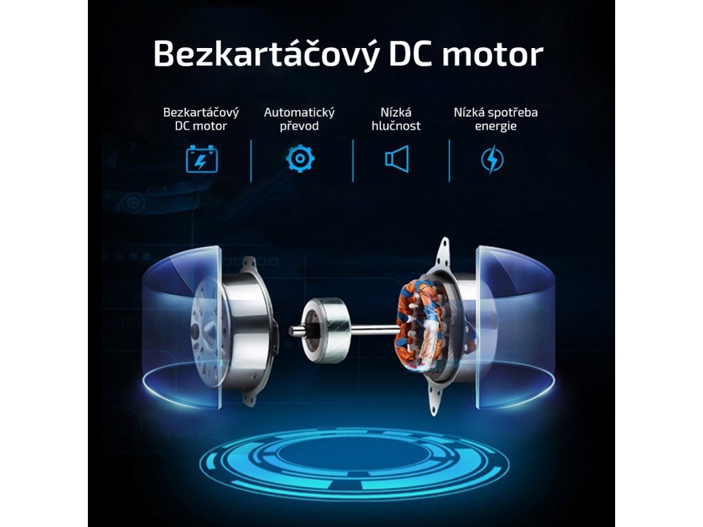 Použitím kvalitního a tichého bezkartáčového DC motoru dosahuje ventilátor hlučnost nižší než 55 dB, což je méně než hlasitost lidské řeči. Proto je vhodný i pro použití v noci, spolu s možností nastavení časovače vypnutí až do 9 hodin.