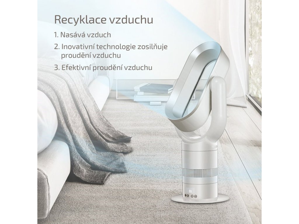 Technologie bez rotujících lopatek umožňuje bezpečné použití v každé domácnosti. Ventilátor se automaticky vypne v případě převrácení a při přehřátí / dosažení max. teploty.