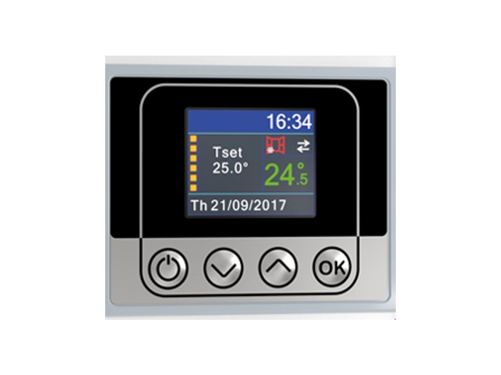 Konvektor lze i bez WIFI ovládat standardním způsobem, tedy manuálně přes ovládací panel a displej umístěné zpředu konvektoru