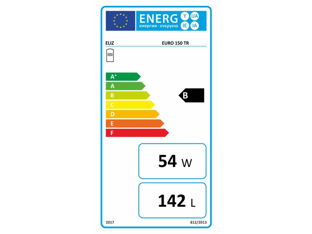 Kombinovaný tlakový ohřívač vody ELÍZ EURO 150 TR o objemu 150 litrů je vhodný pro jedno nebo více odběrných míst. Určený je pro svislou nástěnnou montáž. Obsahuje elektrické topné těleso a topný výměník s možností napojení na externí teplovodní zdroj, např. kotel ÚT. Vývody topení jsou z pravé strany a vývody vody zdola. Ohřívač má také dva otvory pro připojení komunikačních čidel.