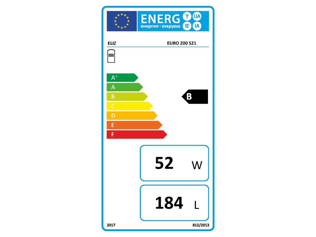 Kombinovaný tlakový ohřívač vody ELÍZ EURO 200 S21 o objemu 200 litrů je vhodný pro jedno nebo více odběrných míst. Určen je pro svislou montáž na zem. Obsahuje elektrické topné těleso a dva topné výměníky s možností napojení na dvě různá média. kotel ÚT a solární zařízení. Ohřívač má otvory pro připojení komunikačních čidel. Výhoda tohoto modelu je ve dvou velikostně rovnocenných výměnících, což značně zvýší rychlost a komfort ohřevu vody. Vhodné pro byty a rodinné domy, kde je nutnost postavit ohřívač na zem a přitom využít tři různá média k ohřevu.