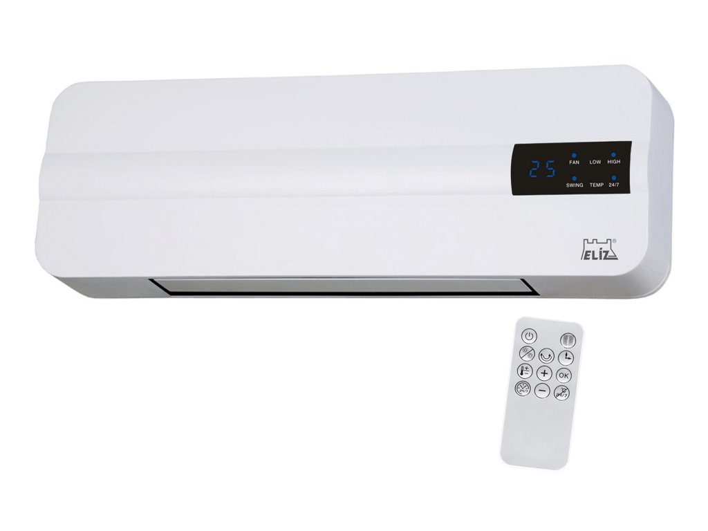 Nástěnný ohřívač vzduchu ELÍZ EWH 200 ERP určený k vytápění místností představuje kombinaci ohřevu vzduchu a ventilátoru. Ohřívač poskytuje přepínatelný výkon 1000/2000 W, nastavení týdenního časovače, senzor otevřeného okna nebo možnost zapnutí jen ventilátoru. Funkci ventilace vzduchu jistě oceníte během letních dnů.