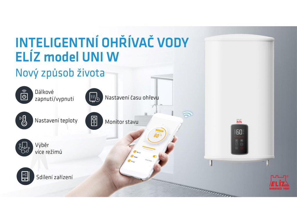 ELÍZ UNI 30 W elektrický plochý ohřívač vody s WIFI, objem 27 l