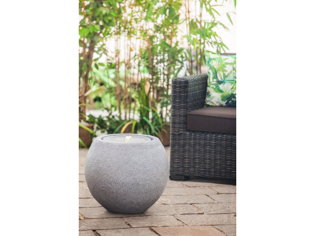 Fontána Heissner BALL LED, granit Designová zahradní fontána Heissner je vkusným doplňkem na každou terasu, zahradu, do haly, či kamkoliv do interiéru. Uklidňující zvuk vody a nasvícení vody pomocí LED osvětlení vytvoří vždy příjemnou relaxační atmosféru. Fontána je vyrobena zmateriálu Polystone, který se často označuje jako umělý kámen. Na první pohled je od kamene neroznatelný, vyniká vdlouhé životnosti, ale je lehčí než přírodní kámen. Fontána je dodávána jako kompletní set. Kromě těla fontány se sběrnounádržkou na vodu je součástí balení čerpadlo s5 m dlouhým kabelem a LED osvětlení. Fontána funguje jako uzavřený okruh, kdy se do sběrné nádržky naleje voda, která pomocí čerpadla vyvěrá z fontány a poté přes fontánu stéká zpět do sběrné nádržky. Zapojení i zprovoznění fontány je velmi jednoduché a zabere pár minut. Kfontáně je možné dokoupit podstavec (podstavec na fotkách není součástí balení). Parametry:Materiál PolystoneBarva šedáLED osvětlení anoRozměr v cm (DxŠxV) 50 x 50 x 43Výkon čerpadla 250 l/hPříkon čerpadla 2,2 WDélka kabelu 5 mDoplňkové parametry