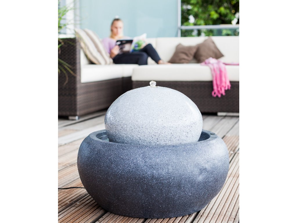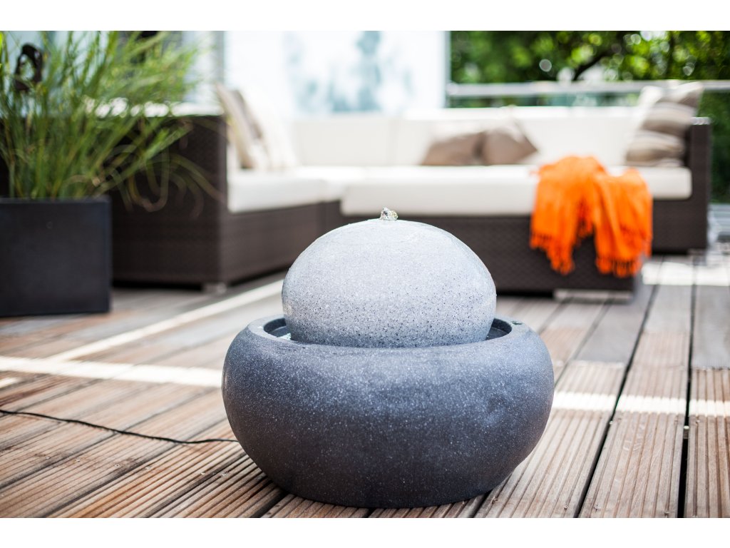 Fontána Heissner ORION LED Designová zahradní fontána Heissner je vkusným doplňkem na každou terasu, zahradu, do haly, či kamkoliv do interiéru. Uklidňující zvuk vody a nasvícení vody pomocí LED osvětlení vytvoří vždy příjemnou relaxační atmosféru. Fontána je vyrobena z materiálu Polystone, který se často označuje jako umělý kámen. Na první pohled je od kamene neroznatelný, vyniká v dlouhé životnosti, ale je lehčí než přírodní kámen. Fontána je dodávána jako kompletní set. Kromě těla fontány se sběrnou nádržkou na vodu je součástí balení čerpadlo s 5 m dlouhým kabelem a LED osvětlení. Fontána funguje jako uzavřený okruh, kdy se do sběrné nádržky naleje voda, která pomocí čerpadla vyvěrá z fontány a poté přes fontánu stéká zpět do sběrné nádržky. Zapojení i zprovoznění fontány je velmi jednoduché a zabere pár minut.Parametry:Materiál PolystoneBarva antracit / šedáLED osvětlení anoRozměr v cm (DxŠxV) 54 x 54 x 42Výkon čerpadla 250 l/hPříkon čerpadla 2,2 WDélka kabelu 5 mDoplňkové parametry