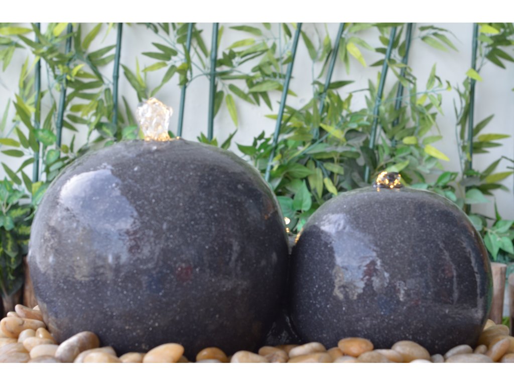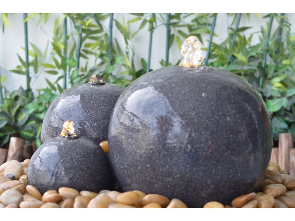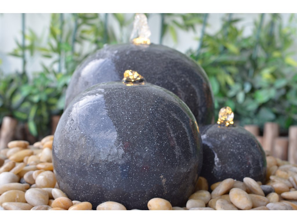 Fontána Heissner SAPHIRA LED, antrazit Designová zahradní fontána Heissner je vkusným doplňkem do každé zahrady. Uklidňující zvuk vody a nasvícení vody pomocí LED osvětlení vytvoří vždy příjemnou relaxační atmosféru. Fontána je vyrobena z materiálu Polystone, který se často označuje jako umělý kámen. Na první pohled je od kamene neroznatelný, vyniká v dlouhé životnosti, ale je lehčí než přírodní kámen. Fontána je dodávána jako kompletní set. Kromě těla fontány a podzemní sběrné nádržky na vodu je součástí balení čerpadlo s 5 m dlouhým kabelem a LED osvětlení. Fontána funguje jako uzavřený okruh, kdy se do sběrné nádržky naleje voda, která pomocí čerpadla vyvěrá z fontány a poté přes fontánu stéká zpět do sběrné nádržky.Parametry:Materiál PolystoneBarva antracitLED osvětlení ano, 3xPrůměr koulí v cm 15 / 23 / 28Výkon čerpadla 800 l/hPříkon čerpadla 17 WObjem sběrného koše 45 lDélka kabelu 5 mDoplňkové parametry
