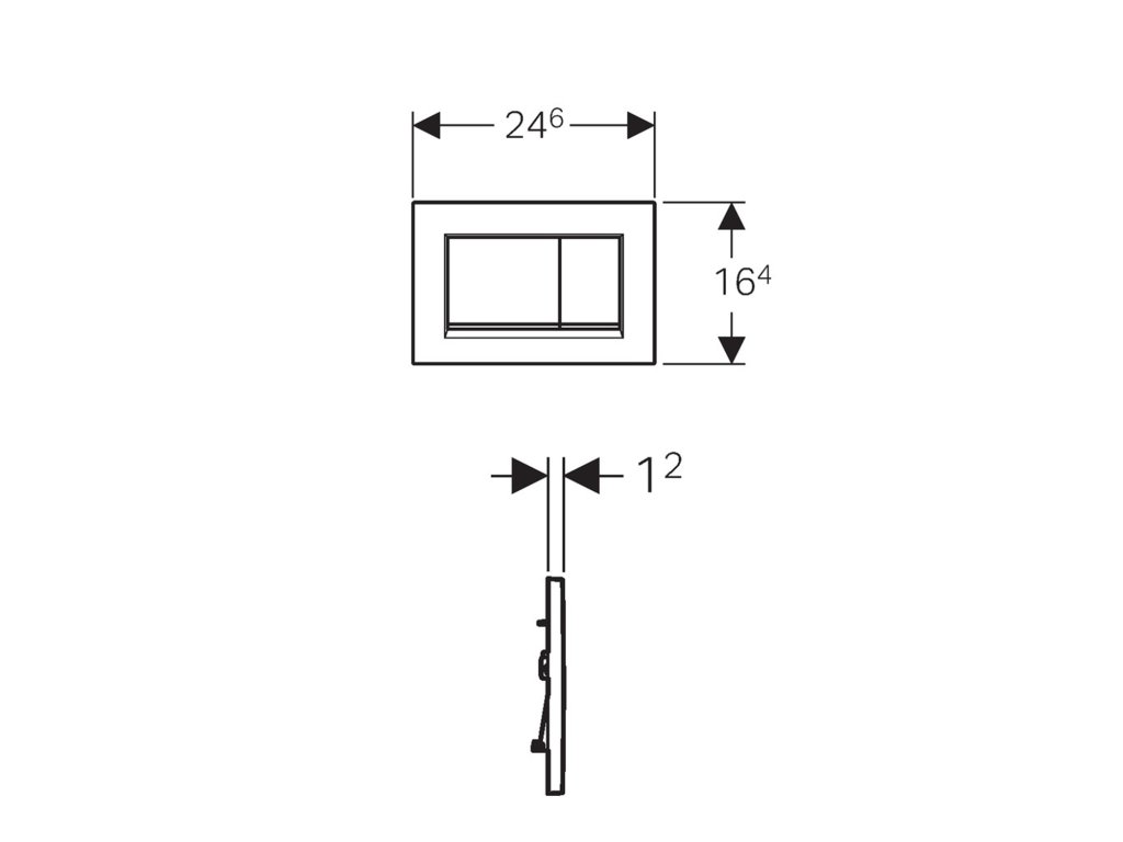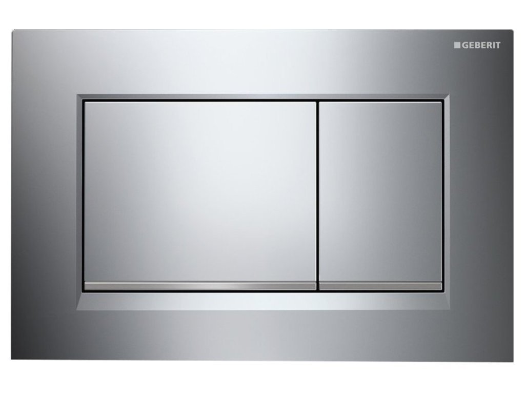 Plastové dvojité ovládací tlačítko Geberit SIGMA30 v barvě lesklý chrom s matným proužkem.