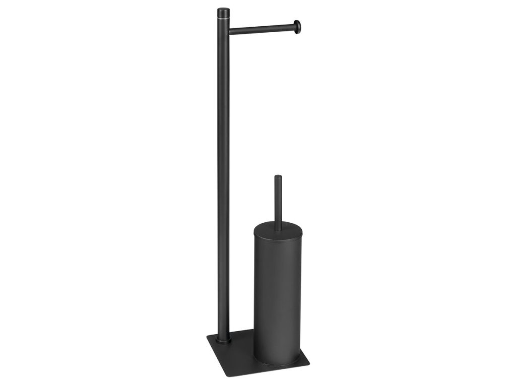 Gedy TRILLY stojan s držákem na toaletní papír a WC štětkou, hranatý, černá mat TR3214