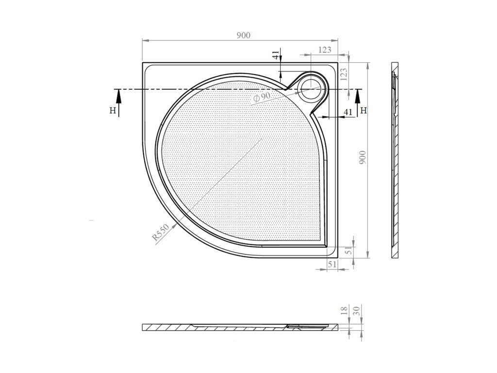 Gelco ARCA sprchová vanička z litého mramoru, čtvrtkruh 90x90cm, R550, bílá PA559