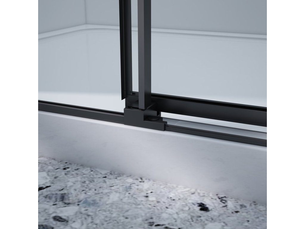 - Sklo dveří je volně zavěšené bez spodního vodícího profilu