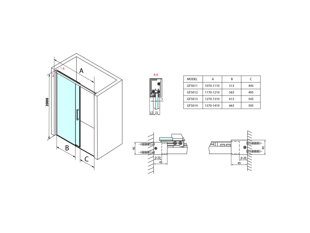 - Sprchové dveře je možno instalovat do niky nebo s boční stěnou.