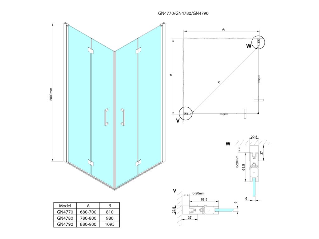 - Dveře skládací 700 - 900 mm umožňují složení ke stěně a úsporu místa v koupelně