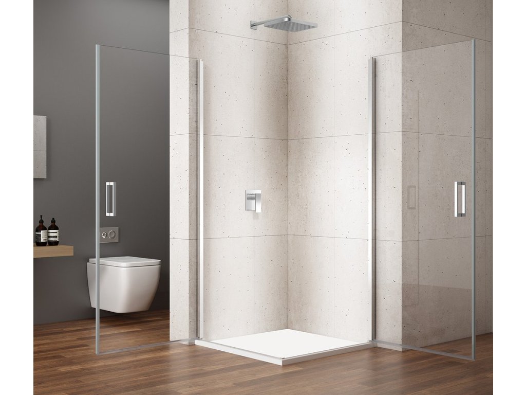- Čtvercové/obdélníkové zástěny s rohovým vstupem