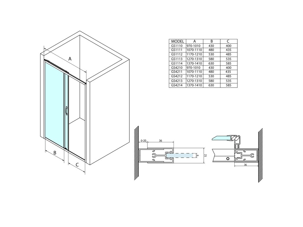- Čtvercové a obdélníkové zástěny s rohovým vstupem vytvoříte spojením dvou posuvných dveří pro rohový vstup